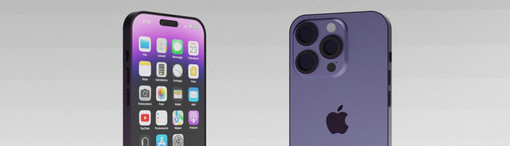 Simple 3D model of an iPhone 14 Pro, created with Blender 3.5